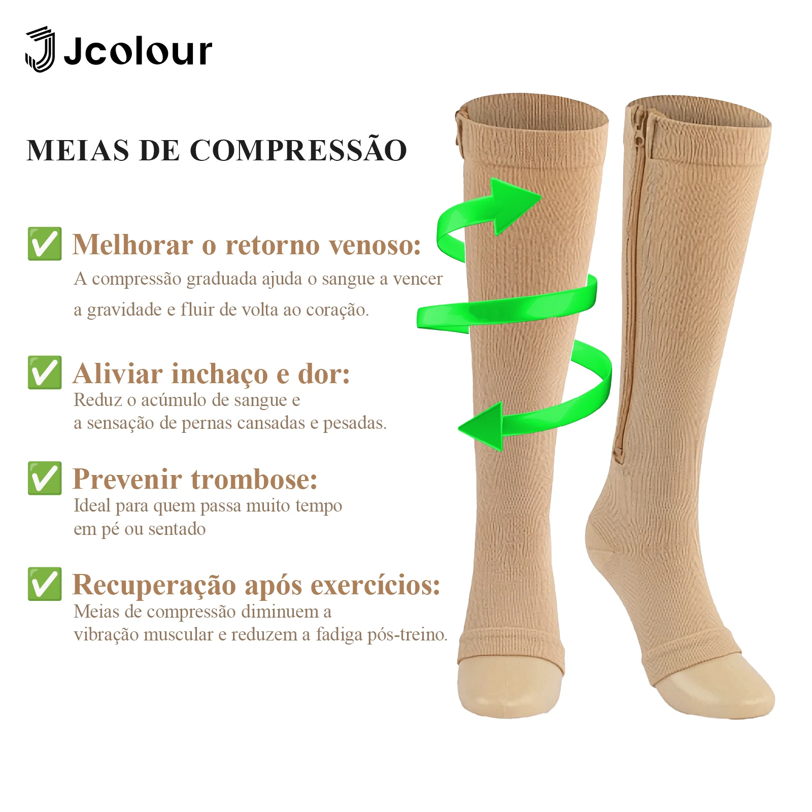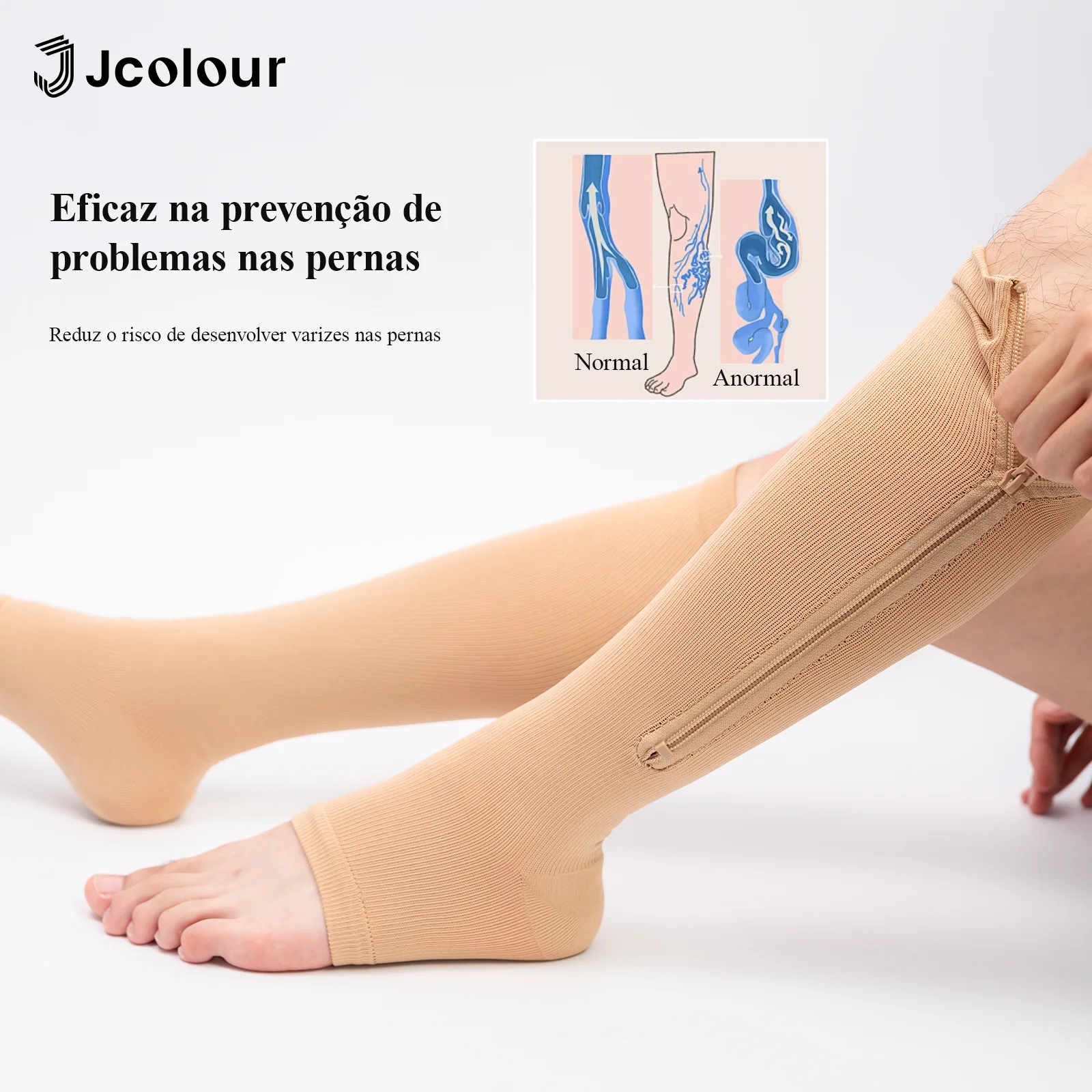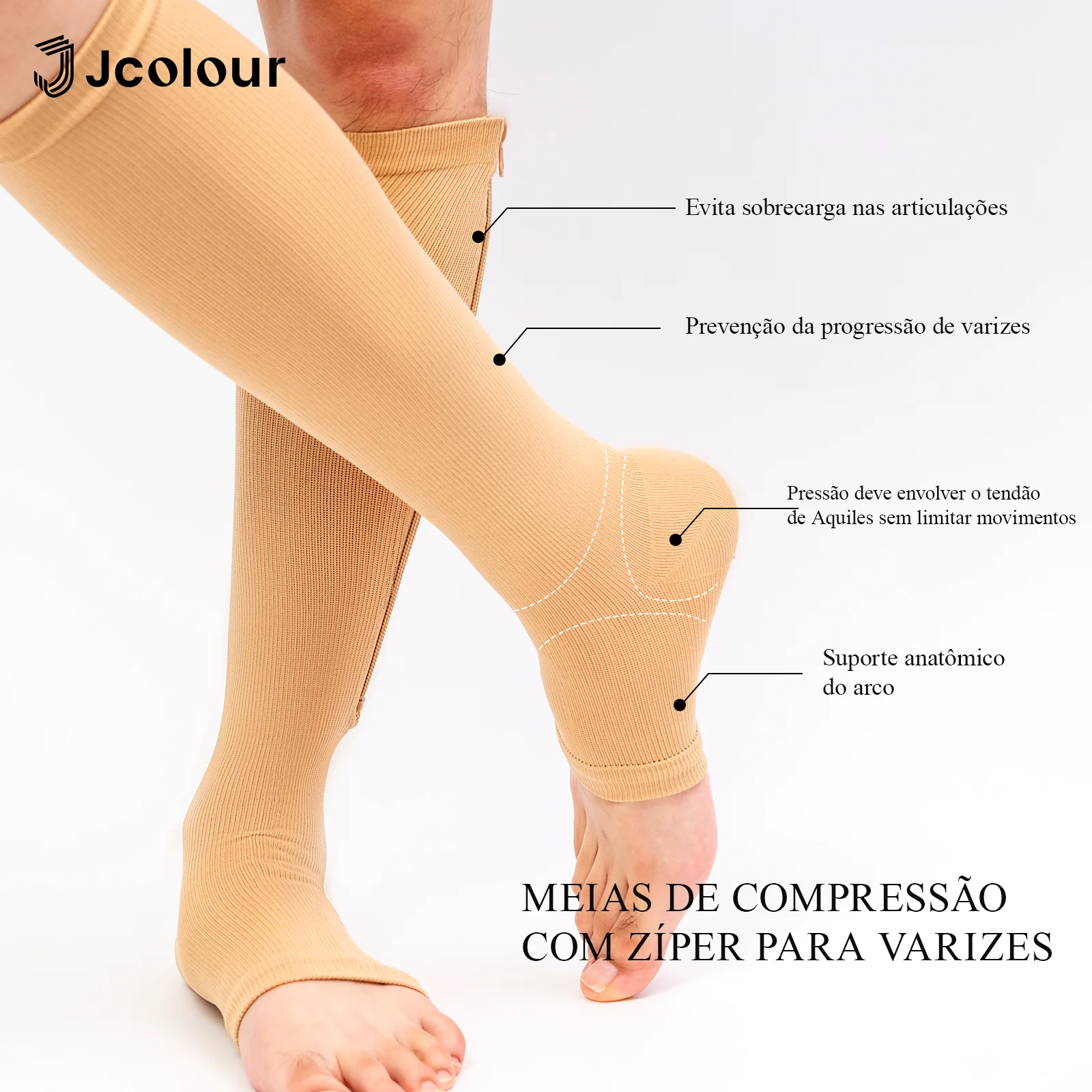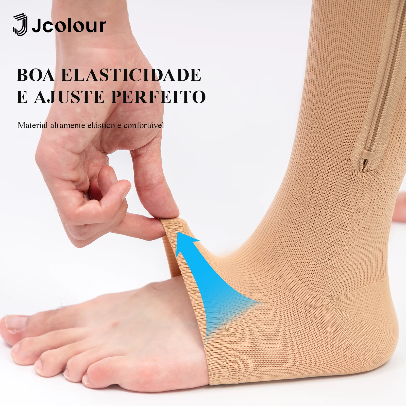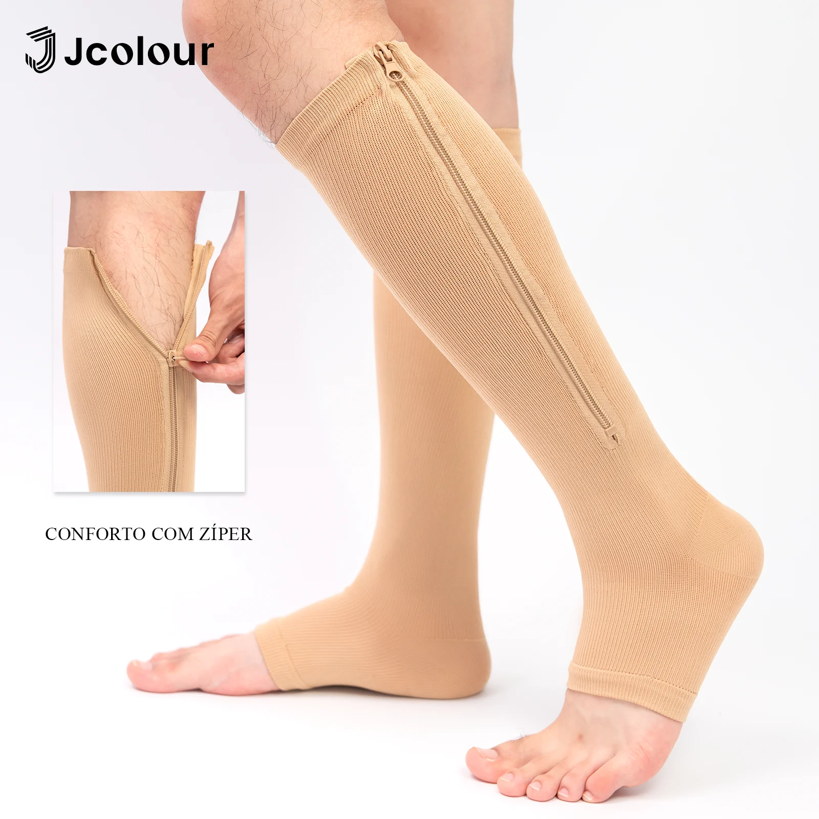 Produto: Meias de compressão na altura do joelho com zíper